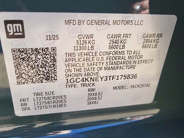 - VIN : 1GC4KNEY3TF175836