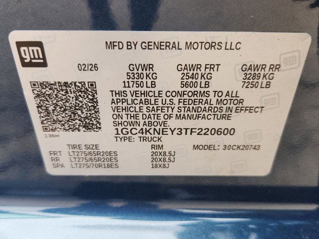 - VIN : 1GC4KNEY3TF220600