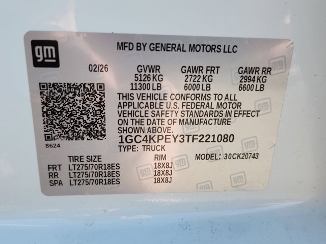 - VIN : 1GC4KPEY3TF221080