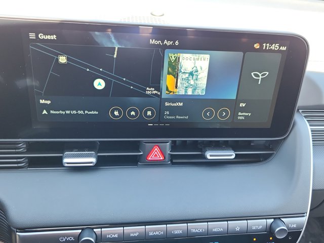 - Radio: AM/FM/SiriusXM/HD Audio System -inc: 12.3 color touchscreen navigation w/traffic flow and incident data via HD radio (HERE) 6 speakers wireless Android Auto and Apple CarPlay integration Blue Link+ connected car system vehicle Wi-Fi hotspot Bluetooth w/phonebook transfer; Hyundai Pay dynamic voice recognition USB input Over-the-Air (OTA) Controller ECU and map/multimedia software update capability