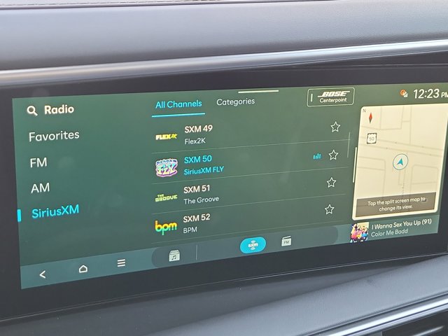 - Radio: Infotainment Navigation System -inc: Bose 14-speaker premium audio system w/Centerpoint and SoundTrue enhanced technology 12.3 color touchscreen wireless Apple CarPlay and Android Auto HD Radio Sirius XM Passenger Talk 2.0 in-car intercom system dynamic voice recognition rear seat quiet mode Bluetooth hands-free w/wireless audio streaming multiple device connection (up to 2 devices) USB connectivity Bluelink + connected car services Wi-Fi hotspot steering wheel audio controls and Over-the-Air (OTA) software updates