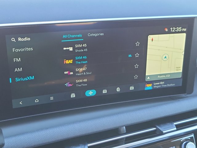 - Radio: AM/FM/HD Audio System -inc: 12.3 color touchscreen w/onboard navigation 6 speakers SiriusXM satellite radio system (3-month trial subscription) wireless Apple CarPlay and Android Auto integration dynamic voice recognition controller OTA update capability map and multimedia software OTA update capability Blue Link connected car system and USB connectivity