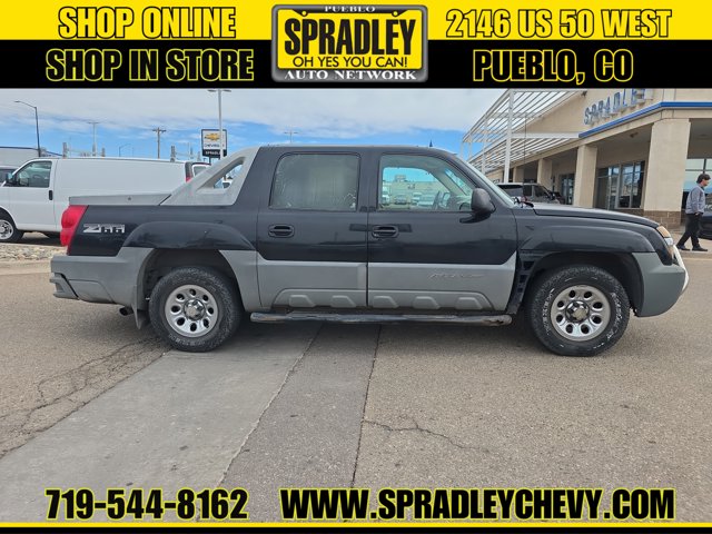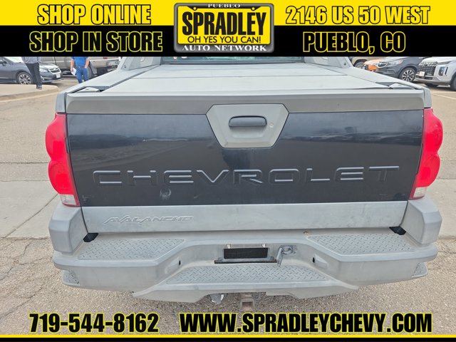 Clean CARFAX. Onyx Black 2002 Chevrolet Avalanche 1500 RWD 4-Speed Automatic with Overdrive Vortec 5.3L V8 SFIRecent Arrival!Come in and see why people buy from Spradley Chevrolet Hyundai and then send their friends and family. We pride ourselves on being the best in customer service and giving you the best deal possible. And if you have good credit, bad credit, bankruptcy, or are a first time buyer, we can help! Call Spradley Chevrolet Hyundais Internet Department today at 719-544-8162 and schedule your time to come in and test drive any of our new Chevrolet Silverado 1500, Impala and Suburbans or Hyundai Santa Fe, Tucson and Accents. And dont forget, we have all makes and models of pre-owned to choose from. Located at 2146 HWY 50 West, Pueblo, Colorado, where you will always hear, Oh Yes You Can! Spradley Chevrolet Hyundai, your dealership for all of Southwest, Southeast and Southern, Colorado!