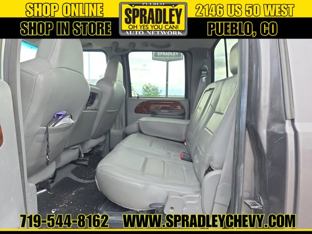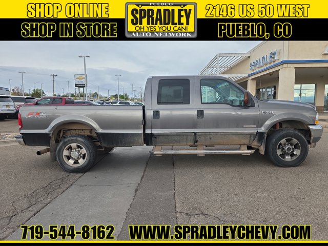 Check out this versatile 2004 Ford Super Duty F-350 SRW Lariat. Underhood service light, Tilt steering column, Sliding rear window, Pwr steering, Pwr door locks w/backlit switches.*This Ford Super Duty F-350 SRW Comes Equipped with These Options *Inside hood release, HD gas shock absorbers, Front/rear license plate bracket, Fog lamps, Chrome front bumper w/lower center trim, Black door handles, Auxiliary pwr point, Air conditioning, Accessory delay, 6-speed manual transmission w/OD.* Stop By Today *You've earned this- stop by Spradley Chevrolet Hyundai located at 2146 W Us Highway 50, Pueblo, CO 81008 to make this car yours today!