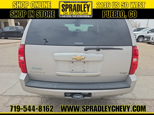 Clean CARFAX. Silver Birch Metallic 2007 Chevrolet Tahoe LT 4WD 4-Speed Automatic with Overdrive Vortec 5.3L V8 SFI Flex Fuel 4WD, Ebony Leather.Recent Arrival!Come in and see why people buy from Spradley Chevrolet Hyundai and then send their friends and family. We pride ourselves on being the best in customer service and giving you the best deal possible. And if you have good credit, bad credit, bankruptcy, or are a first time buyer, we can help! Call Spradley Chevrolet Hyundais Internet Department today at 719-544-8162 and schedule your time to come in and test drive any of our new Chevrolet Silverado 1500, Impala and Suburbans or Hyundai Santa Fe, Tucson and Accents. And dont forget, we have all makes and models of pre-owned to choose from. Located at 2146 HWY 50 West, Pueblo, Colorado, where you will always hear, Oh Yes You Can! Spradley Chevrolet Hyundai, your dealership for all of Southwest, Southeast and Southern, Colorado!