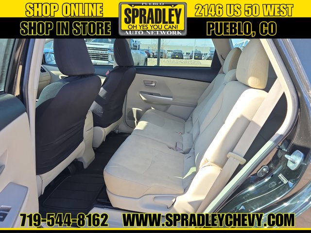 Black 2012 Toyota Prius v Two FWD CVT 1.8L 4-Cylinder DOHC 16V VVT-i AluminumRecent Arrival! 44/40 City/Highway MPGCome in and see why people buy from Spradley Chevrolet Hyundai and then send their friends and family. We pride ourselves on being the best in customer service and giving you the best deal possible. And if you have good credit, bad credit, bankruptcy, or are a first time buyer, we can help! Call Spradley Chevrolet Hyundais Internet Department today at 719-544-8162 and schedule your time to come in and test drive any of our new Chevrolet Silverado 1500, Impala and Suburbans or Hyundai Santa Fe, Tucson and Accents. And dont forget, we have all makes and models of pre-owned to choose from. Located at 2146 HWY 50 West, Pueblo, Colorado, where you will always hear, Oh Yes You Can! Spradley Chevrolet Hyundai, your dealership for all of Southwest, Southeast and Southern, Colorado!