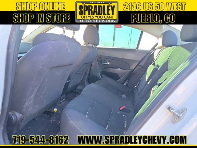 Only 110,216 Miles! Delivers 38 Highway MPG and 26 City MPG! This Chevrolet Cruze delivers a Turbocharged Gas I4 1.4L/83 engine powering this Automatic transmission. TRANSMISSION, 6-SPEED AUTOMATIC, ELECTRONICALLY CONTROLLED WITH OVERDRIVE, SUMMIT WHITE, SEATS, FRONT BUCKET WITH RECLINING SEATBACKS AND ADJUSTABLE HEAD RESTRAINTS.* This Chevrolet Cruze Features the Following Options *PREFERRED EQUIPMENT GROUP, LICENSE PLATE BRACKET, FRONT, JET BLACK, PREMIUM CLOTH SEAT TRIM, ENGINE, ECOTEC TURBO 1.4L VARIABLE VALVE TIMING DOHC 4-CYLINDER SEQUENTIAL MFI (138 hp [103 kW] @ 4900 rpm, 148 lb-ft of torque [199.8 N-m] @ 1850 rpm), AUDIO SYSTEM AM/FM stereo with CD player and MP3 playback capability, graphical display, Wipers, front intermittent, variable, Windows, power with Express-Down on all and driver Express Up, Wheels, 16 (40.6 cm) painted aluminum, Visors, driver and front passenger vanity mirrors, Trunk emergency release handle.* Stop By Today *Live a little- stop by Spradley Chevrolet Hyundai located at 2146 W Us Highway 50, Pueblo, CO 81008 to make this car yours today!