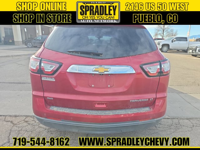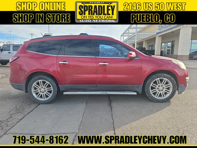 Crystal Red Tintcoat 2014 Chevrolet Traverse LT 1LT AWD 6-Speed Automatic 3.6L V6 SIDI AWD.Odometer is 44702 miles below market average!Come in and see why people buy from Spradley Chevrolet Hyundai and then send their friends and family. We pride ourselves on being the best in customer service and giving you the best deal possible. And if you have good credit, bad credit, bankruptcy, or are a first time buyer, we can help! Call Spradley Chevrolet Hyundais Internet Department today at 719-544-8162 and schedule your time to come in and test drive any of our new Chevrolet Silverado 1500, Impala and Suburbans or Hyundai Santa Fe, Tucson and Accents. And dont forget, we have all makes and models of pre-owned to choose from. Located at 2146 HWY 50 West, Pueblo, Colorado, where you will always hear, Oh Yes You Can! Spradley Chevrolet Hyundai, your dealership for all of Southwest, Southeast and Southern, Colorado!