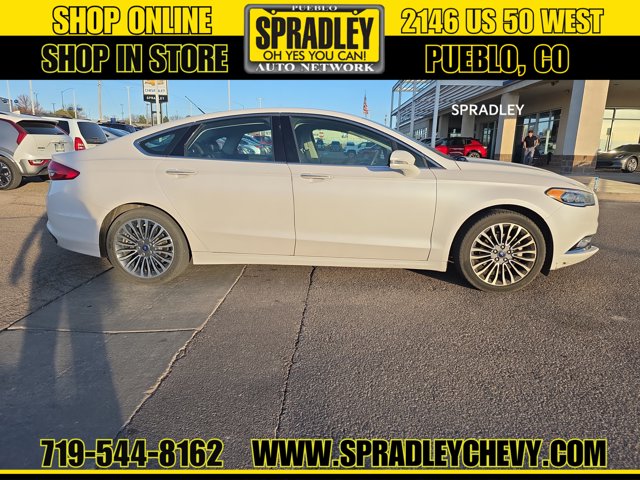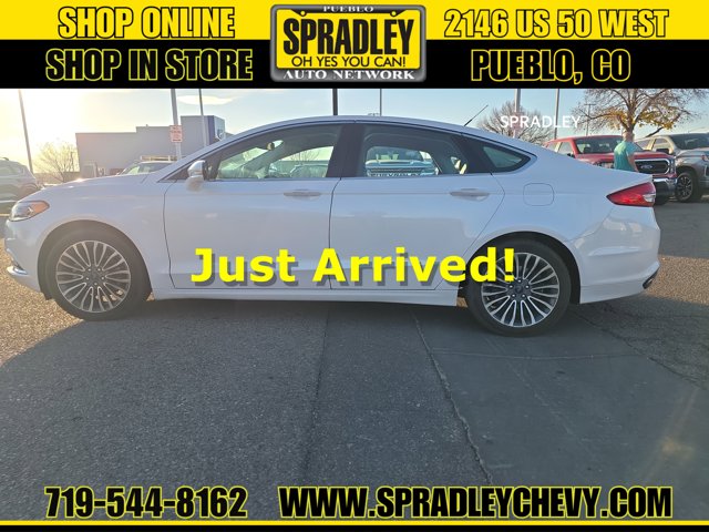 Clean CARFAX. White Platinum Clearcoat Metallic 2017 Ford Fusion SE FWD 6-Speed Automatic EcoBoost 2.0L I4 GTDi DOHC Turbocharged VCT 6-Speed Automatic.Recent Arrival! 21/31 City/Highway MPGCome in and see why people buy from Spradley Chevrolet Hyundai and then send their friends and family. We pride ourselves on being the best in customer service and giving you the best deal possible. And if you have good credit, bad credit, bankruptcy, or are a first time buyer, we can help! Call Spradley Chevrolet Hyundais Internet Department today at 719-544-8162 and schedule your time to come in and test drive any of our new Chevrolet Silverado 1500, Impala and Suburbans or Hyundai Santa Fe, Tucson and Accents. And dont forget, we have all makes and models of pre-owned to choose from. Located at 2146 HWY 50 West, Pueblo, Colorado, where you will always hear, Oh Yes You Can! Spradley Chevrolet Hyundai, your dealership for all of Southwest, Southeast and Southern, Colorado!