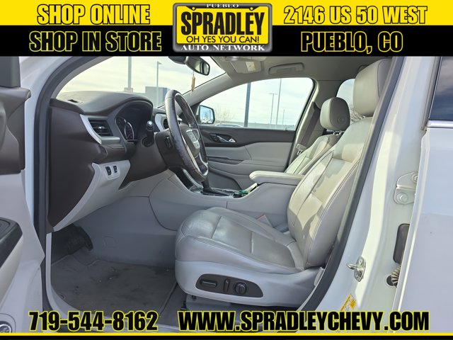 Summit White 2017 GMC Acadia SLT-1 AWD 6-Speed Automatic 3.6L V6 SIDI DOHC VVT AWD, Cocoa/ Light Ash Gray Leather.Come in and see why people buy from Spradley Chevrolet Hyundai and then send their friends and family. We pride ourselves on being the best in customer service and giving you the best deal possible. And if you have good credit, bad credit, bankruptcy, or are a first time buyer, we can help! Call Spradley Chevrolet Hyundais Internet Department today at 719-544-8162 and schedule your time to come in and test drive any of our new Chevrolet Silverado 1500, Impala and Suburbans or Hyundai Santa Fe, Tucson and Accents. And dont forget, we have all makes and models of pre-owned to choose from. Located at 2146 HWY 50 West, Pueblo, Colorado, where you will always hear, Oh Yes You Can! Spradley Chevrolet Hyundai, your dealership for all of Southwest, Southeast and Southern, Colorado!