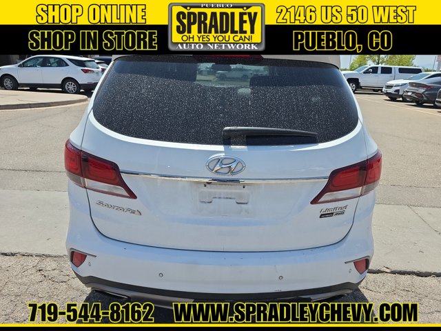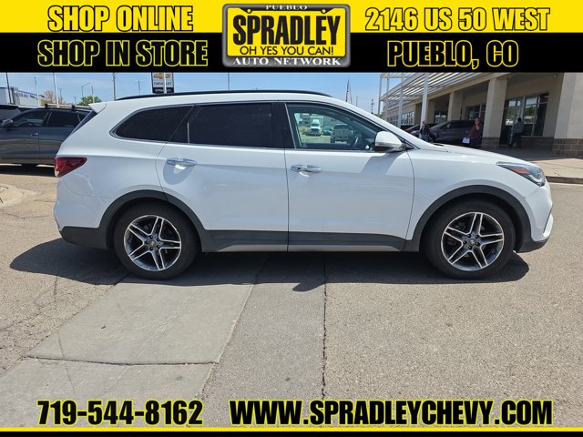 Monaco White 2017 Hyundai Santa Fe Limited Ultimate AWD 6-Speed Automatic with Shiftronic 3.3L V6 DGI DOHC 24V AWD, Black w/Leather Seating Surfaces.Recent Arrival!Come in and see why people buy from Spradley Chevrolet Hyundai and then send their friends and family. We pride ourselves on being the best in customer service and giving you the best deal possible. And if you have good credit, bad credit, bankruptcy, or are a first time buyer, we can help! Call Spradley Chevrolet Hyundais Internet Department today at 719-544-8162 and schedule your time to come in and test drive any of our new Chevrolet Silverado 1500, Impala and Suburbans or Hyundai Santa Fe, Tucson and Accents. And dont forget, we have all makes and models of pre-owned to choose from. Located at 2146 HWY 50 West, Pueblo, Colorado, where you will always hear, Oh Yes You Can! Spradley Chevrolet Hyundai, your dealership for all of Southwest, Southeast and Southern, Colorado!
