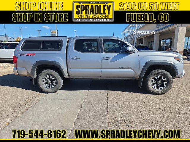 Silver Sky Metallic 2017 Toyota Tacoma TRD Off-Road V6 4WD 6-Speed Automatic V6 4WD, ABS brakes, Air Conditioning, Alloy wheels, Compass, Electronic Stability Control, Illuminated entry, Low tire pressure warning, Remote keyless entry, Traction control.Odometer is 28587 miles below market average!Come in and see why people buy from Spradley Chevrolet Hyundai and then send their friends and family. We pride ourselves on being the best in customer service and giving you the best deal possible. And if you have good credit, bad credit, bankruptcy, or are a first time buyer, we can help! Call Spradley Chevrolet Hyundais Internet Department today at 719-544-8162 and schedule your time to come in and test drive any of our new Chevrolet Silverado 1500, Impala and Suburbans or Hyundai Santa Fe, Tucson and Accents. And dont forget, we have all makes and models of pre-owned to choose from. Located at 2146 HWY 50 West, Pueblo, Colorado, where you will always hear, Oh Yes You Can! Spradley Chevrolet Hyundai, your dealership for all of Southwest, Southeast and Southern, Colorado!