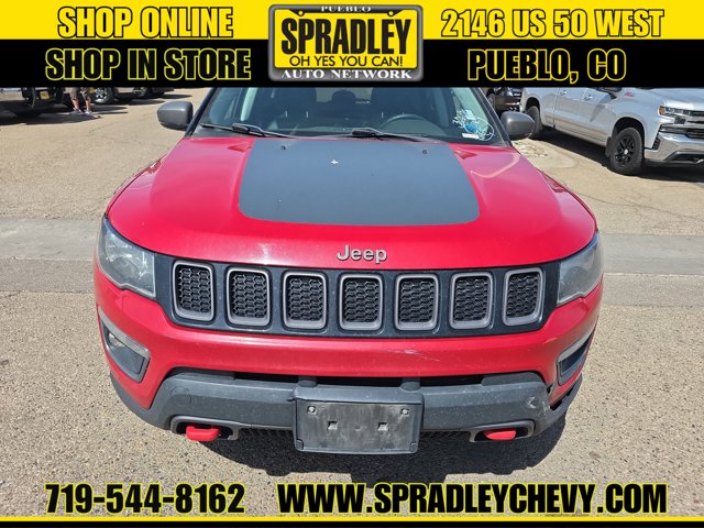 CARFAX One-Owner. Clean CARFAX. Redline Pearlcoat 2018 Jeep Compass Trailhawk 4WD 9-Speed Automatic 2.4L I4 4WD.Recent Arrival! 22/30 City/Highway MPGCome in and see why people buy from Spradley Chevrolet Hyundai and then send their friends and family. We pride ourselves on being the best in customer service and giving you the best deal possible. And if you have good credit, bad credit, bankruptcy, or are a first time buyer, we can help! Call Spradley Chevrolet Hyundais Internet Department today at 719-544-8162 and schedule your time to come in and test drive any of our new Chevrolet Silverado 1500, Impala and Suburbans or Hyundai Santa Fe, Tucson and Accents. And dont forget, we have all makes and models of pre-owned to choose from. Located at 2146 HWY 50 West, Pueblo, Colorado, where you will always hear, Oh Yes You Can! Spradley Chevrolet Hyundai, your dealership for all of Southwest, Southeast and Southern, Colorado!