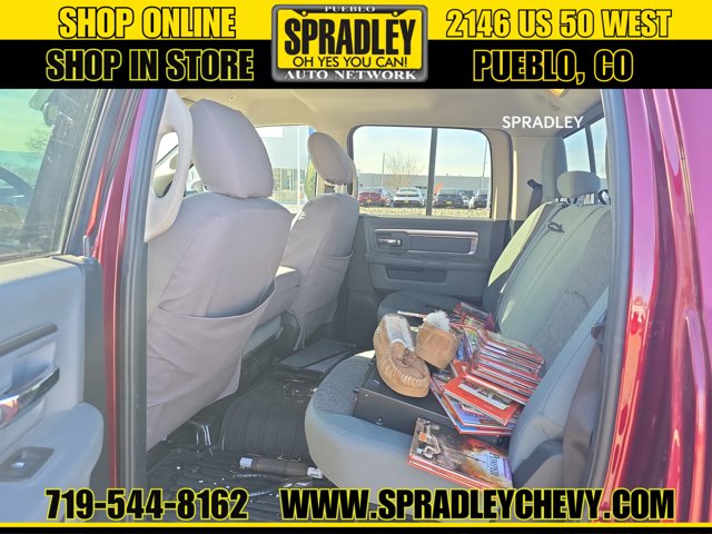 Delmonico Red Pearlcoat 2018 Ram 1500 Big Horn 4WD 8-Speed Automatic HEMI 5.7L V8 Multi Displacement VVTRecent Arrival! Odometer is 26087 miles below market average!Come in and see why people buy from Spradley Chevrolet Hyundai and then send their friends and family. We pride ourselves on being the best in customer service and giving you the best deal possible. And if you have good credit, bad credit, bankruptcy, or are a first time buyer, we can help! Call Spradley Chevrolet Hyundais Internet Department today at 719-544-8162 and schedule your time to come in and test drive any of our new Chevrolet Silverado 1500, Impala and Suburbans or Hyundai Santa Fe, Tucson and Accents. And dont forget, we have all makes and models of pre-owned to choose from. Located at 2146 HWY 50 West, Pueblo, Colorado, where you will always hear, Oh Yes You Can! Spradley Chevrolet Hyundai, your dealership for all of Southwest, Southeast and Southern, Colorado!