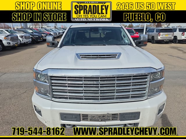 Clean CARFAX. Iridescent Pearl Tricoat 2019 Chevrolet Silverado 2500HD High Country 4WD Allison 1000 6-Speed Automatic Duramax 6.6L V8 Turbodiesel Allison 1000 6-Speed Automatic, 4WD, Jet Black Medium Ash Gray Piping Stitching Leather.Recent Arrival!Come in and see why people buy from Spradley Chevrolet Hyundai and then send their friends and family. We pride ourselves on being the best in customer service and giving you the best deal possible. And if you have good credit, bad credit, bankruptcy, or are a first time buyer, we can help! Call Spradley Chevrolet Hyundais Internet Department today at 719-544-8162 and schedule your time to come in and test drive any of our new Chevrolet Silverado 1500, Impala and Suburbans or Hyundai Santa Fe, Tucson and Accents. And dont forget, we have all makes and models of pre-owned to choose from. Located at 2146 HWY 50 West, Pueblo, Colorado, where you will always hear, Oh Yes You Can! Spradley Chevrolet Hyundai, your dealership for all of Southwest, Southeast and Southern, Colorado!