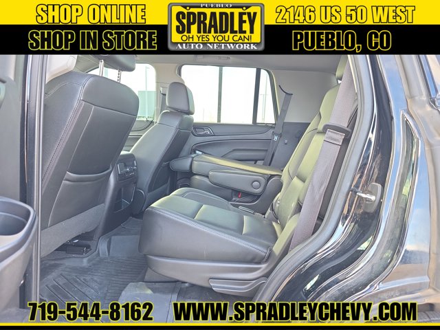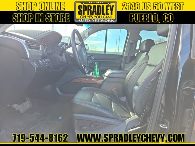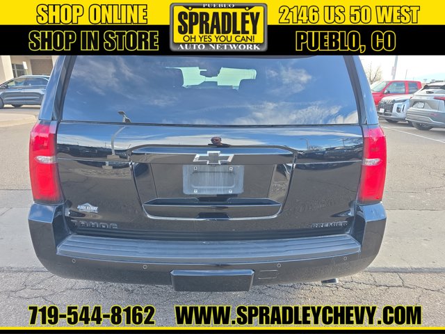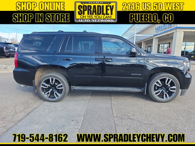 Check out this versatile 2019 Chevrolet Tahoe Premier. Wireless Charging, Wipers, front intermittent, Rainsense, Wiper, rear intermittent with washer, Windows, power, with Express-Down and Express-Up on front doors and lock out features, Wheels, 20 x 9 (50.8 cm x 22.9 cm) polished-aluminum.*This Chevrolet Tahoe Comes Equipped with These Options *Wheel, full-size spare, 17 (43.2 cm) steel, Warning tones headlamp on, key-in-ignition, driver and right-front passenger seat belt unfasten and turn signal on, Universal Home Remote includes garage door opener, programmable, Transmission, 6-speed automatic, electronically controlled with overdrive and tow/haul mode, Trailering equipment includes trailering hitch platform, 7-wire harness with independent fused trailering circuits mated to a 7-way sealed connector and 2 trailering receiver, Trailer sway control, Tires, P275/55R20 all-season, blackwall, Tire, spare P265/70R17 all-season, blackwall, Tire Pressure Monitor System air pressure sensors in each tire with pressure display in Driver Information Center, includes Tire Fill Alert., Tire carrier, lockable outside spare, winch-type mounted under frame at rear.* Visit Us Today *Come in for a quick visit at Spradley Chevrolet Hyundai, 2146 W Us Highway 50, Pueblo, CO 81008 to claim your Chevrolet Tahoe!