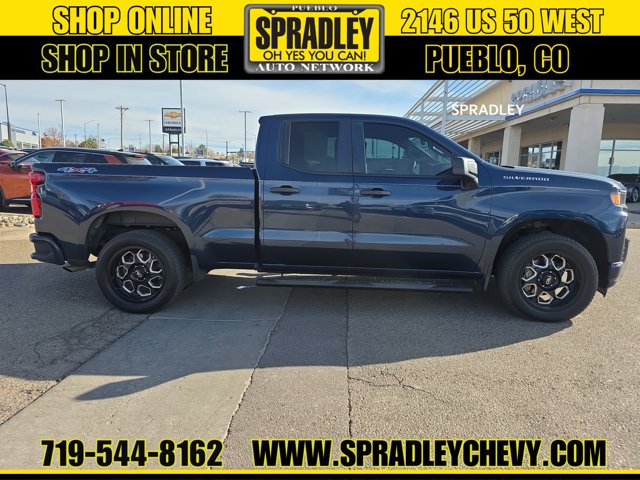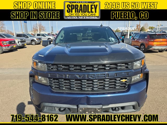 CARFAX One-Owner. Northsky Blue Metallic 2020 Chevrolet Silverado 1500 Custom 4WD 6-Speed Automatic Electronic with Overdrive EcoTec3 4.3L V6 6-Speed Automatic Electronic with Overdrive, 4WD, Black Cloth.Recent Arrival!Come in and see why people buy from Spradley Chevrolet Hyundai and then send their friends and family. We pride ourselves on being the best in customer service and giving you the best deal possible. And if you have good credit, bad credit, bankruptcy, or are a first time buyer, we can help! Call Spradley Chevrolet Hyundais Internet Department today at 719-544-8162 and schedule your time to come in and test drive any of our new Chevrolet Silverado 1500, Impala and Suburbans or Hyundai Santa Fe, Tucson and Accents. And dont forget, we have all makes and models of pre-owned to choose from. Located at 2146 HWY 50 West, Pueblo, Colorado, where you will always hear, Oh Yes You Can! Spradley Chevrolet Hyundai, your dealership for all of Southwest, Southeast and Southern, Colorado!