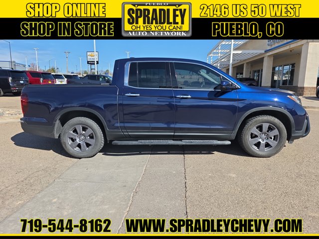 CARFAX One-Owner. Clean CARFAX. Obsidian Blue Pearl 2020 Honda Ridgeline RTL-E AWD 9-Speed Automatic 3.5L V6 SOHC i-VTEC 24V Gray w/Leather Seat Trim.Recent Arrival! Odometer is 31165 miles below market average!Come in and see why people buy from Spradley Chevrolet Hyundai and then send their friends and family. We pride ourselves on being the best in customer service and giving you the best deal possible. And if you have good credit, bad credit, bankruptcy, or are a first time buyer, we can help! Call Spradley Chevrolet Hyundais Internet Department today at 719-544-8162 and schedule your time to come in and test drive any of our new Chevrolet Silverado 1500, Impala and Suburbans or Hyundai Santa Fe, Tucson and Accents. And dont forget, we have all makes and models of pre-owned to choose from. Located at 2146 HWY 50 West, Pueblo, Colorado, where you will always hear, Oh Yes You Can! Spradley Chevrolet Hyundai, your dealership for all of Southwest, Southeast and Southern, Colorado!