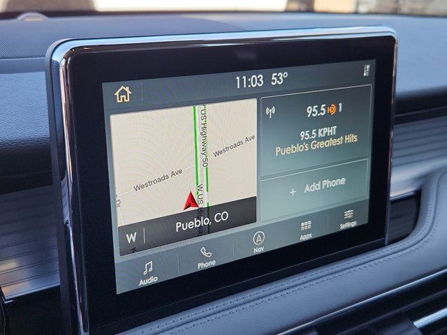 - Radio: Revel Audio System w/HD Radio & MP3 -inc: AM/FM, 14 speakers including subwoofers and voice-activated touchscreen navigation system including pinch-to-zoom capability and SiriusXM Traffic and Travel Link w/6-year prepaid subscription in the 48 contiguous states, Service not available in AK/HI