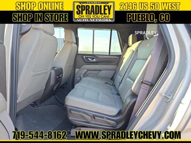 CARFAX One-Owner. Clean CARFAX. Empire Beige Metallic 2021 Chevrolet Tahoe LT 4WD 10-Speed Automatic with Overdrive EcoTec3 5.3L V8 4WD, Gideon/Very Dark Atmosphere w/Leather Seat Trim.Recent Arrival!Come in and see why people buy from Spradley Chevrolet Hyundai and then send their friends and family. We pride ourselves on being the best in customer service and giving you the best deal possible. And if you have good credit, bad credit, bankruptcy, or are a first time buyer, we can help! Call Spradley Chevrolet Hyundais Internet Department today at 719-544-8162 and schedule your time to come in and test drive any of our new Chevrolet Silverado 1500, Impala and Suburbans or Hyundai Santa Fe, Tucson and Accents. And dont forget, we have all makes and models of pre-owned to choose from. Located at 2146 HWY 50 West, Pueblo, Colorado, where you will always hear, Oh Yes You Can! Spradley Chevrolet Hyundai, your dealership for all of Southwest, Southeast and Southern, Colorado!