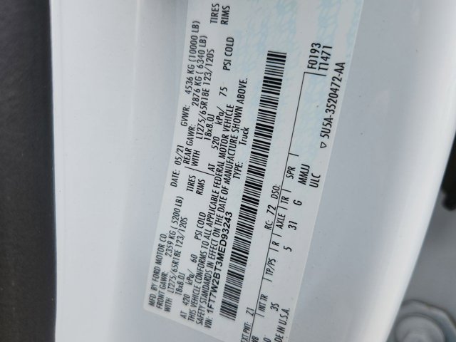 - VIN : 1FT7W2BT3MED93243