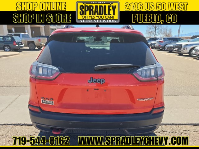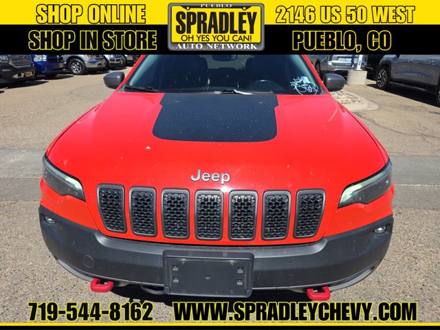 Clean CARFAX. Spitfire Orange Clearcoat 2021 Jeep Cherokee Trailhawk 4WD 9-Speed Automatic 3.2L V6Recent Arrival! Odometer is 11362 miles below market average!Come in and see why people buy from Spradley Chevrolet Hyundai and then send their friends and family. We pride ourselves on being the best in customer service and giving you the best deal possible. And if you have good credit, bad credit, bankruptcy, or are a first time buyer, we can help! Call Spradley Chevrolet Hyundais Internet Department today at 719-544-8162 and schedule your time to come in and test drive any of our new Chevrolet Silverado 1500, Impala and Suburbans or Hyundai Santa Fe, Tucson and Accents. And dont forget, we have all makes and models of pre-owned to choose from. Located at 2146 HWY 50 West, Pueblo, Colorado, where you will always hear, Oh Yes You Can! Spradley Chevrolet Hyundai, your dealership for all of Southwest, Southeast and Southern, Colorado!