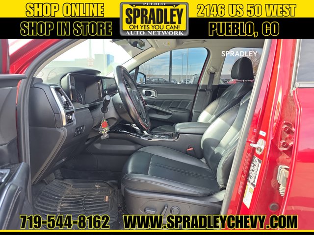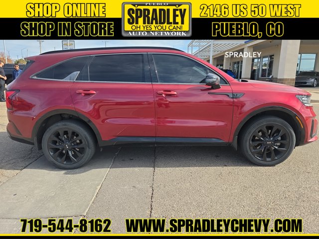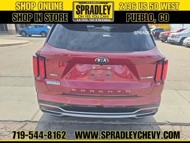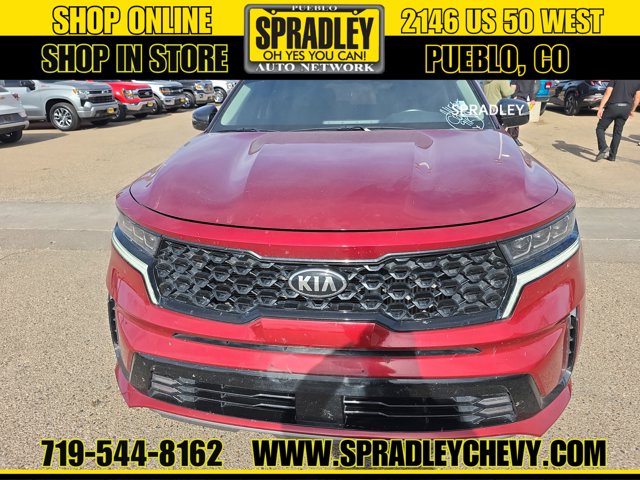 Clean CARFAX. Passion Red Tintcoat 2021 Kia Sorento SX AWD 8-Speed DCT 2.5L I4 DGI Turbocharged DOHC 16V LEV3-ULEV70 281hp AWD.Recent Arrival! 21/28 City/Highway MPGCome in and see why people buy from Spradley Chevrolet Hyundai and then send their friends and family. We pride ourselves on being the best in customer service and giving you the best deal possible. And if you have good credit, bad credit, bankruptcy, or are a first time buyer, we can help! Call Spradley Chevrolet Hyundais Internet Department today at 719-544-8162 and schedule your time to come in and test drive any of our new Chevrolet Silverado 1500, Impala and Suburbans or Hyundai Santa Fe, Tucson and Accents. And dont forget, we have all makes and models of pre-owned to choose from. Located at 2146 HWY 50 West, Pueblo, Colorado, where you will always hear, Oh Yes You Can! Spradley Chevrolet Hyundai, your dealership for all of Southwest, Southeast and Southern, Colorado!