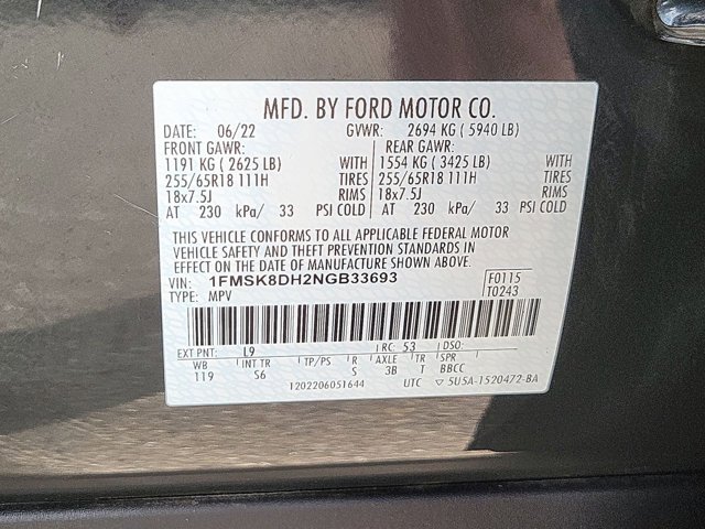 - VIN : 1FMSK8DH2NGB33693