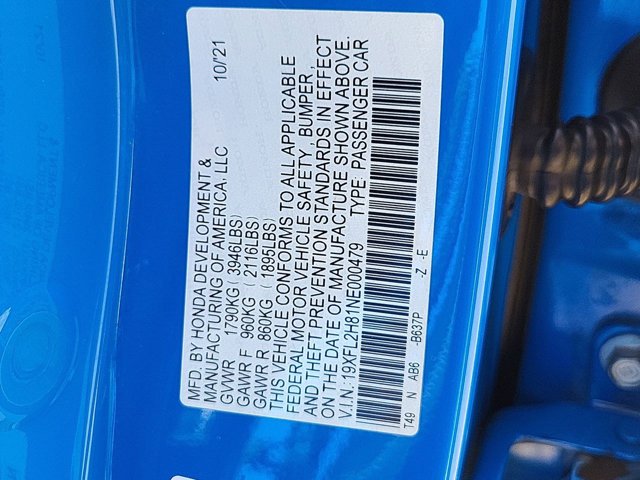 - VIN : 19XFL2H81NE000479