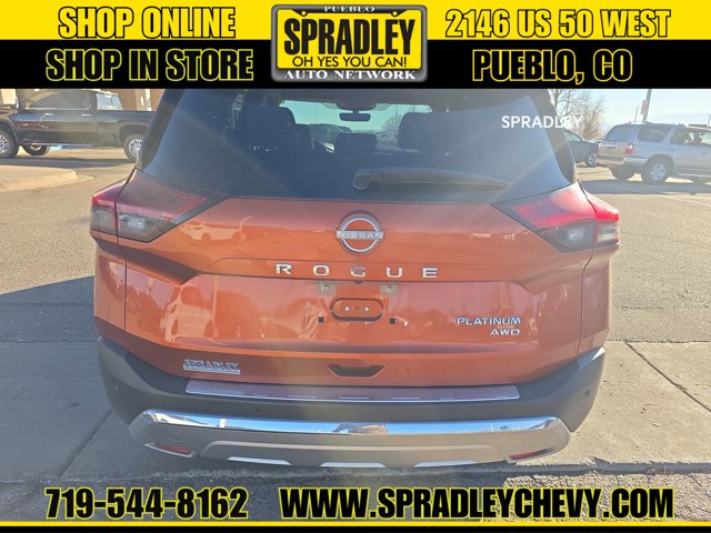 Sunset Drift Chromaflair/Super Black 2022 Nissan Rogue Platinum AWD CVT with Xtronic 1.5L I3 Turbocharged DOHC 12V LEV3-ULEV50 201hp AWD.Odometer is 14961 miles below market average! 28/34 City/Highway MPGCome in and see why people buy from Spradley Chevrolet Hyundai and then send their friends and family. We pride ourselves on being the best in customer service and giving you the best deal possible. And if you have good credit, bad credit, bankruptcy, or are a first time buyer, we can help! Call Spradley Chevrolet Hyundais Internet Department today at 719-544-8162 and schedule your time to come in and test drive any of our new Chevrolet Silverado 1500, Impala and Suburbans or Hyundai Santa Fe, Tucson and Accents. And dont forget, we have all makes and models of pre-owned to choose from. Located at 2146 HWY 50 West, Pueblo, Colorado, where you will always hear, Oh Yes You Can! Spradley Chevrolet Hyundai, your dealership for all of Southwest, Southeast and Southern, Colorado!
