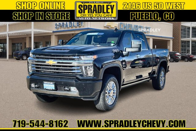 Mosaic Black Metallic 2023 Chevrolet Silverado 2500HD High Country 4WD 10-Speed Automatic Duramax 6.6L V8 Turbodiesel 10-Speed Automatic, 4WD, Jet Black w/Perf Leather-Appointed Front Outboard Seat Trim.Come in and see why people buy from Spradley Chevrolet Hyundai and then send their friends and family. We pride ourselves on being the best in customer service and giving you the best deal possible. And if you have good credit, bad credit, bankruptcy, or are a first time buyer, we can help! Call Spradley Chevrolet Hyundais Internet Department today at 719-544-8162 and schedule your time to come in and test drive any of our new Chevrolet Silverado 1500, Impala and Suburbans or Hyundai Santa Fe, Tucson and Accents. And dont forget, we have all makes and models of pre-owned to choose from. Located at 2146 HWY 50 West, Pueblo, Colorado, where you will always hear, Oh Yes You Can! Spradley Chevrolet Hyundai, your dealership for all of Southwest, Southeast and Southern, Colorado!