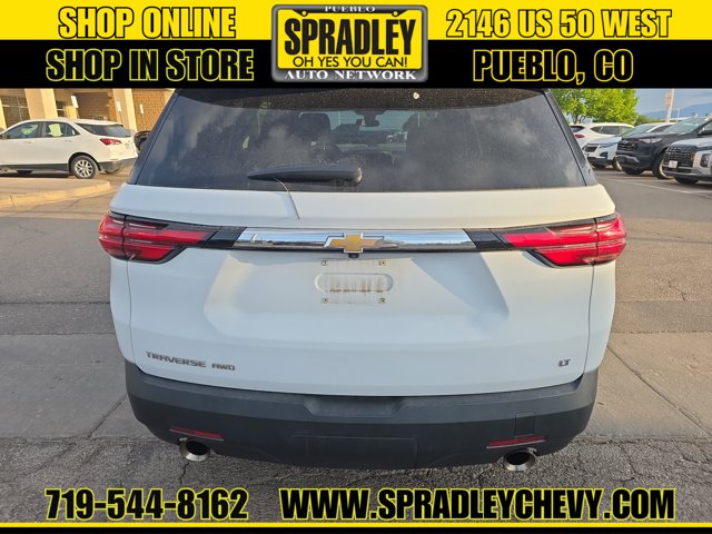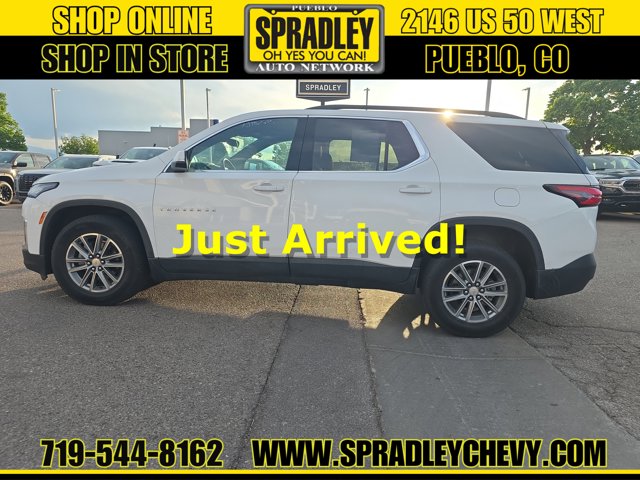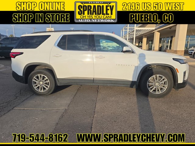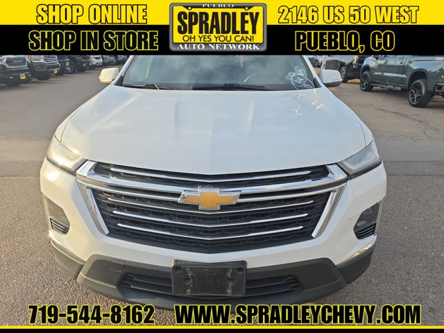 Delivers 25 Highway MPG and 17 City MPG! This Chevrolet Traverse boasts a Gas V6 3.6L/217 engine powering this Automatic transmission. ENGINE, 3.6L V6, SIDI, VVT (310 hp [232.0 kW] @ 6800 rpm, 266 lb-ft of torque [361 N-m] @ 2800 rpm) (STD), Wireless Phone Charging, Wireless Apple CarPlay/Wireless Android Auto.* This Chevrolet Traverse Features the Following Options *Wipers, front intermittent with washers, Wiper, rear intermittent with washer, Windows, power with driver Express Up/Down and front passenger Express-Down, Wi-Fi Hotspot capable (Terms and limitations apply. See onstar.com or dealer for details.), Wheels, 18-inch (45.7 cm) Bright Silver-painted aluminum, Wheel, spare, 18 (45.7 cm) steel, Visors, driver and passenger illuminated vanity mirrors, covered, Vehicle health management, USB ports 2 first row, 2 second row, 2 third row, Umbrella holders, driver and front passenger doors.* Visit Us Today *A short visit to Spradley Chevrolet Hyundai located at 2146 W Us Highway 50, Pueblo, CO 81008 can get you a trustworthy Traverse today!