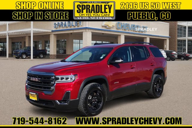 Volcanic Red Tintcoat 2023 GMC Acadia AT4 AWD 9-Speed Automatic 3.6L V6 SIDI AWD, Jet Black Leather.Odometer is 8329 miles below market average! 19/26 City/Highway MPGCome in and see why people buy from Spradley Chevrolet Hyundai and then send their friends and family. We pride ourselves on being the best in customer service and giving you the best deal possible. And if you have good credit, bad credit, bankruptcy, or are a first time buyer, we can help! Call Spradley Chevrolet Hyundais Internet Department today at 719-544-8162 and schedule your time to come in and test drive any of our new Chevrolet Silverado 1500, Impala and Suburbans or Hyundai Santa Fe, Tucson and Accents. And dont forget, we have all makes and models of pre-owned to choose from. Located at 2146 HWY 50 West, Pueblo, Colorado, where you will always hear, Oh Yes You Can! Spradley Chevrolet Hyundai, your dealership for all of Southwest, Southeast and Southern, Colorado!