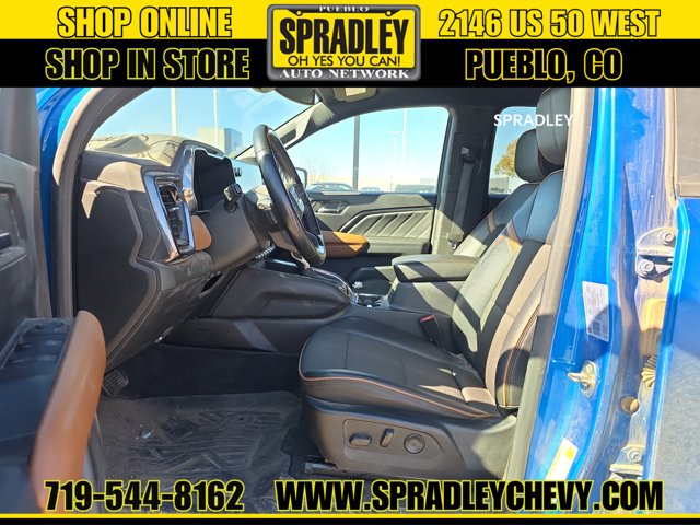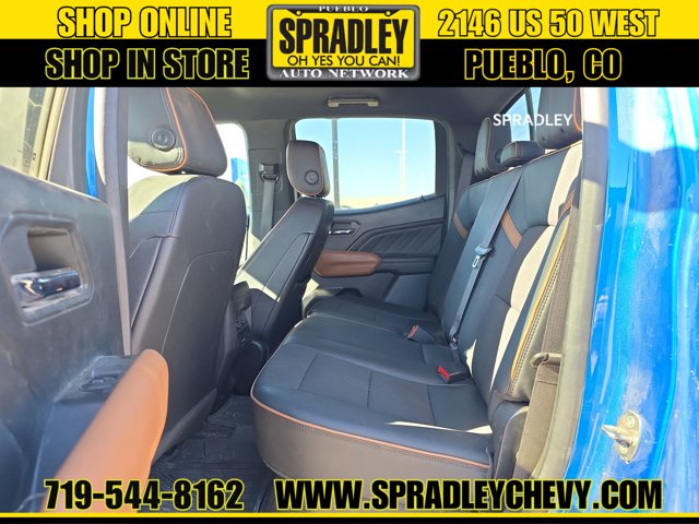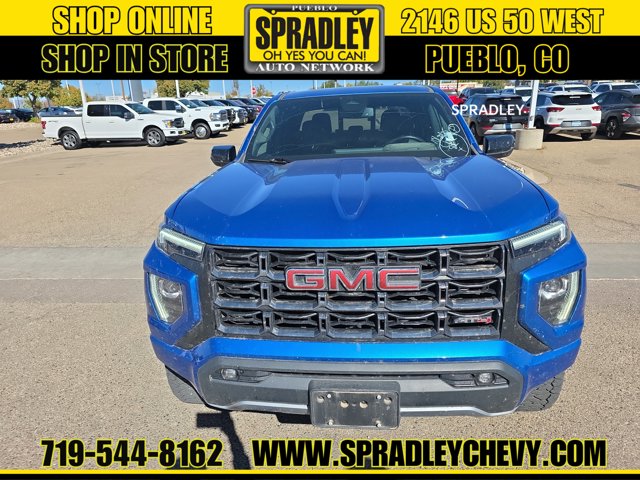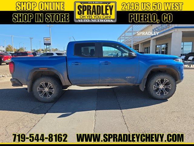 CARFAX One-Owner. Dynamic Blue Metallic 2023 GMC Canyon AT4 4WD 8-Speed Automatic 2.7L Turbo 4WD.Come in and see why people buy from Spradley Chevrolet Hyundai and then send their friends and family. We pride ourselves on being the best in customer service and giving you the best deal possible. And if you have good credit, bad credit, bankruptcy, or are a first time buyer, we can help! Call Spradley Chevrolet Hyundais Internet Department today at 719-544-8162 and schedule your time to come in and test drive any of our new Chevrolet Silverado 1500, Impala and Suburbans or Hyundai Santa Fe, Tucson and Accents. And dont forget, we have all makes and models of pre-owned to choose from. Located at 2146 HWY 50 West, Pueblo, Colorado, where you will always hear, Oh Yes You Can! Spradley Chevrolet Hyundai, your dealership for all of Southwest, Southeast and Southern, Colorado!