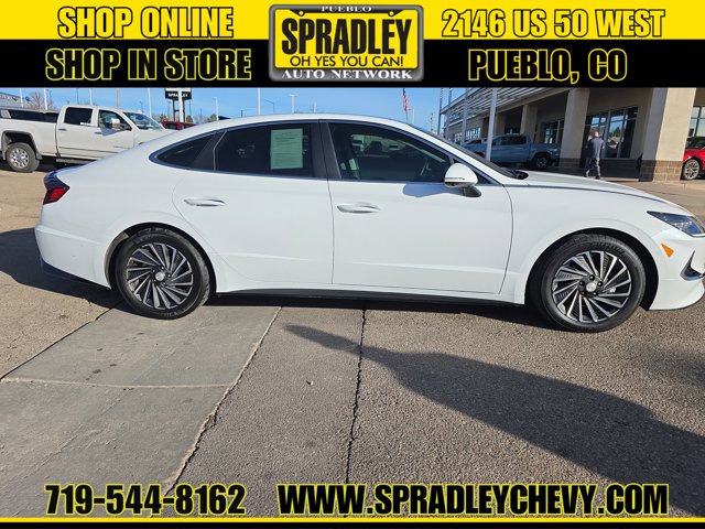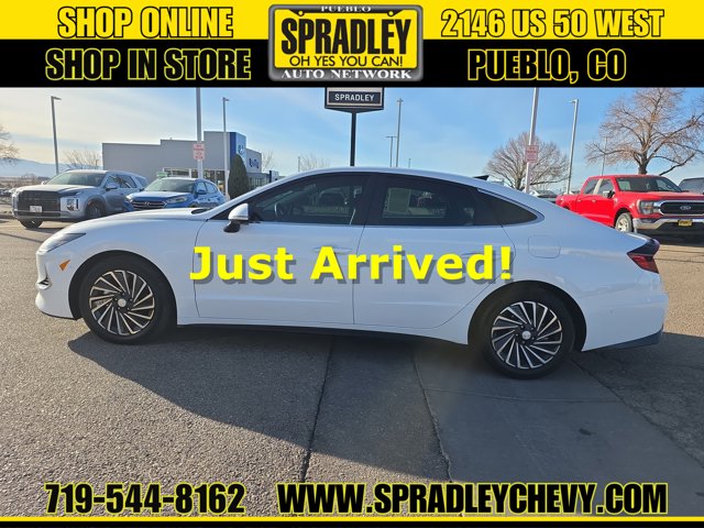 CARFAX One-Owner. Clean CARFAX. Serenity White 2023 Hyundai Sonata Hybrid Limited FWD 6-Speed Automatic with Shiftronic I4 I4.Recent Arrival! Odometer is 5031 miles below market average! 45/51 City/Highway MPGCome in and see why people buy from Spradley Chevrolet Hyundai and then send their friends and family. We pride ourselves on being the best in customer service and giving you the best deal possible. And if you have good credit, bad credit, bankruptcy, or are a first time buyer, we can help! Call Spradley Chevrolet Hyundais Internet Department today at 719-544-8162 and schedule your time to come in and test drive any of our new Chevrolet Silverado 1500, Impala and Suburbans or Hyundai Santa Fe, Tucson and Accents. And dont forget, we have all makes and models of pre-owned to choose from. Located at 2146 HWY 50 West, Pueblo, Colorado, where you will always hear, Oh Yes You Can! Spradley Chevrolet Hyundai, your dealership for all of Southwest, Southeast and Southern, Colorado!