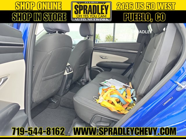 This Hyundai Tucson boasts a Regular Unleaded I-4 2.5 L/152 engine powering this Automatic transmission. Trip computer, Transmission w/Driver Selectable Mode, Tire Specific Low Tire Pressure Warning.* This Hyundai Tucson Features the Following Options *Tailgate/Rear Door Lock Included w/Power Door Locks, Strut Front Suspension w/Coil Springs, Streaming Audio, Steel Spare Wheel, Side Impact Beams, Remote Keyless Entry w/Integrated Key Transmitter, Illuminated Entry, Illuminated Ignition Switch and Panic Button, Redundant Digital Speedometer, Rear View Monitor (RVM) Back-Up Camera, Rear Cupholder, Rear Child Safety Locks.* Stop By Today *For a must-own Hyundai Tucson come see us at Spradley Chevrolet Hyundai, 2146 W Us Highway 50, Pueblo, CO 81008. Just minutes away!