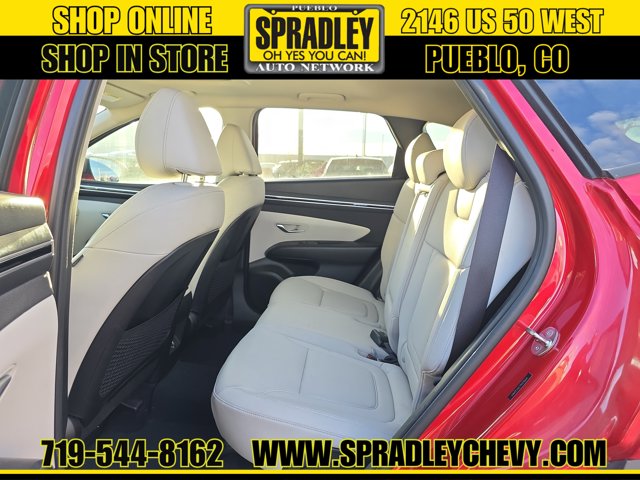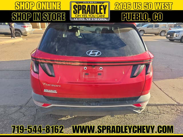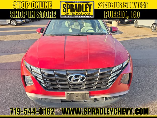 CARFAX One-Owner. Clean CARFAX. Calypso Red 2023 Hyundai Tucson SEL FWD 8-Speed Automatic with SHIFTRONIC 2.5L I4 DGI DOHC 16V LEV3-ULEV70 187hpRecent Arrival! Odometer is 32639 miles below market average! 25/32 City/Highway MPGCome in and see why people buy from Spradley Chevrolet Hyundai and then send their friends and family. We pride ourselves on being the best in customer service and giving you the best deal possible. And if you have good credit, bad credit, bankruptcy, or are a first time buyer, we can help! Call Spradley Chevrolet Hyundais Internet Department today at 719-544-8162 and schedule your time to come in and test drive any of our new Chevrolet Silverado 1500, Impala and Suburbans or Hyundai Santa Fe, Tucson and Accents. And dont forget, we have all makes and models of pre-owned to choose from. Located at 2146 HWY 50 West, Pueblo, Colorado, where you will always hear, Oh Yes You Can! Spradley Chevrolet Hyundai, your dealership for all of Southwest, Southeast and Southern, Colorado!