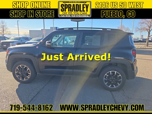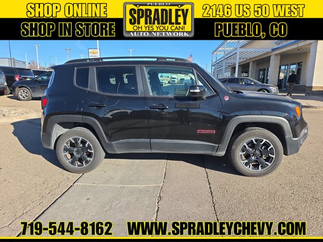 CARFAX One-Owner. Clean CARFAX. Black Clearcoat 2023 Jeep Renegade Trailhawk 4WD 9-Speed 948TE Automatic 1.3L I4Recent Arrival! 22/27 City/Highway MPGCome in and see why people buy from Spradley Chevrolet Hyundai and then send their friends and family. We pride ourselves on being the best in customer service and giving you the best deal possible. And if you have good credit, bad credit, bankruptcy, or are a first time buyer, we can help! Call Spradley Chevrolet Hyundais Internet Department today at 719-544-8162 and schedule your time to come in and test drive any of our new Chevrolet Silverado 1500, Impala and Suburbans or Hyundai Santa Fe, Tucson and Accents. And dont forget, we have all makes and models of pre-owned to choose from. Located at 2146 HWY 50 West, Pueblo, Colorado, where you will always hear, Oh Yes You Can! Spradley Chevrolet Hyundai, your dealership for all of Southwest, Southeast and Southern, Colorado!
