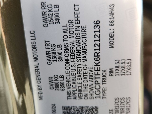 - VIN : 1GCPTFEK6R1212136