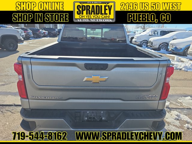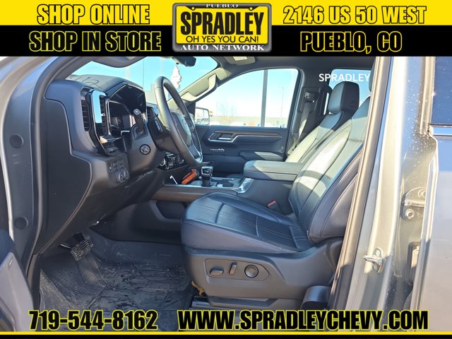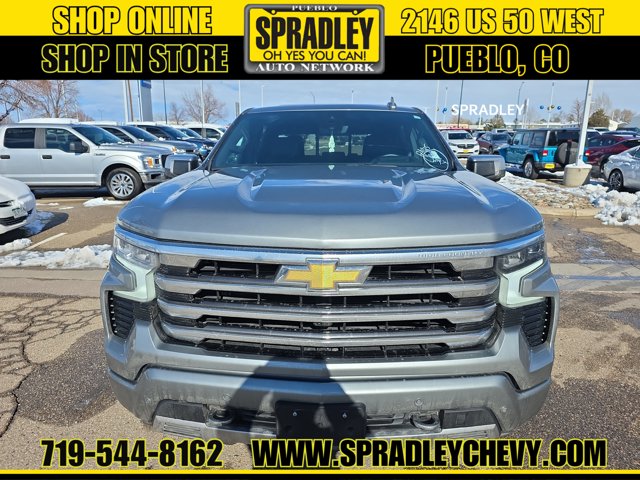 CARFAX One-Owner. Sterling Gray Metallic 2024 Chevrolet Silverado 1500 High Country 4WD 10-Speed Automatic EcoTec3 5.3L V8 10-Speed Automatic, 4WD, Jet Black/Nightshift Blue w/Perforated Leather Seat Trim.Recent Arrival!Come in and see why people buy from Spradley Chevrolet Hyundai and then send their friends and family. We pride ourselves on being the best in customer service and giving you the best deal possible. And if you have good credit, bad credit, bankruptcy, or are a first time buyer, we can help! Call Spradley Chevrolet Hyundais Internet Department today at 719-544-8162 and schedule your time to come in and test drive any of our new Chevrolet Silverado 1500, Impala and Suburbans or Hyundai Santa Fe, Tucson and Accents. And dont forget, we have all makes and models of pre-owned to choose from. Located at 2146 HWY 50 West, Pueblo, Colorado, where you will always hear, Oh Yes You Can! Spradley Chevrolet Hyundai, your dealership for all of Southwest, Southeast and Southern, Colorado!