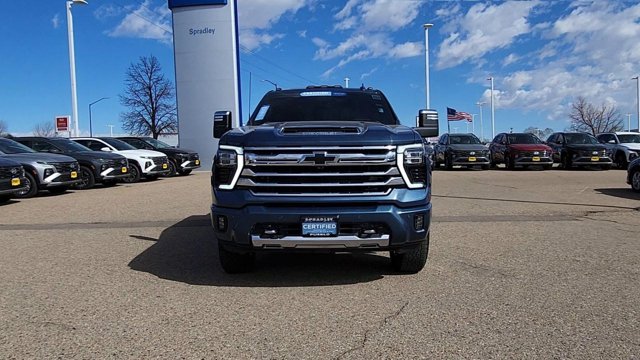 Clean CARFAX. Certified. Lakeshore Blue Metallic 2024 Chevrolet Silverado 2500HD High Country 4WD 10-Speed Automatic Duramax 6.6L V8 Turbodiesel 10-Speed Automatic, 4WD, Jet Black/Nightshift Blue Leather.Odometer is 15013 miles below market average!Chevrolet Certified Pre-Owned Details:* 24 months/24,000 miles (whichever comes first) Certified Pre-Owned Scheduled Maintenance Plan and 3 days/150 miles (whichever comes first) Vehicle Exchange Program. SiriusXM 3-month trial subscription.* Powertrain Limited Warranty: 72 Month/100,000 Mile (whichever comes first) from original in-service date* Warranty Deductible: $0* Roadside Assistance* Transferable Warranty* Limited Warranty: 12 Month/12,000 Mile (whichever comes first) from certified purchase date* Vehicle History* 172 Point InspectionCome in and see why people buy from Spradley Chevrolet Hyundai and then send their friends and family. We pride ourselves on being the best in customer service and giving you the best deal possible. And if you have good credit, bad credit, bankruptcy, or are a first time buyer, we can help! Call Spradley Chevrolet Hyundais Internet Department today at 719-544-8162 and schedule your time to come in and test drive any of our new Chevrolet Silverado 1500, Impala and Suburbans or Hyundai Santa Fe, Tucson and Accents. And dont forget, we have all makes and models of pre-owned to choose from. Located at 2146 HWY 50 West, Pueblo, Colorado, where you will always hear, Oh Yes You Can! Spradley Chevrolet Hyundai, your dealership for all of Southwest, Southeast and Southern, Colorado!