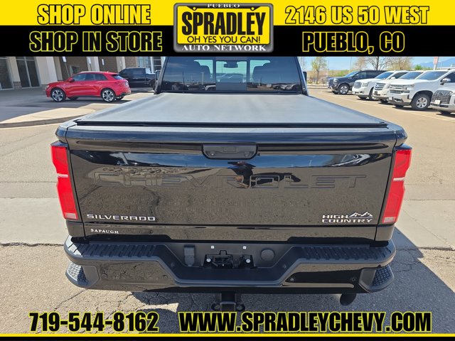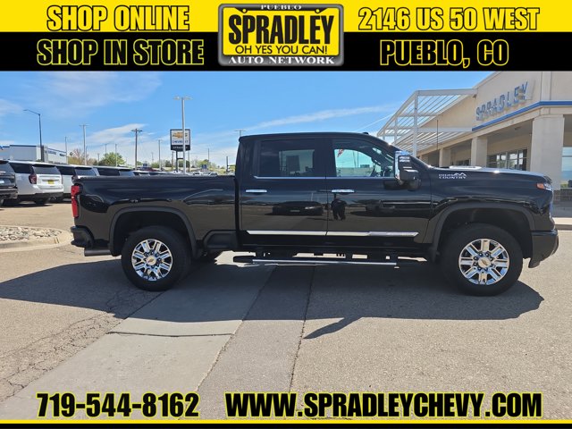 CARFAX One-Owner. Clean CARFAX. Black 2024 Chevrolet Silverado 2500HD High Country 4WD 10-Speed Automatic Duramax 6.6L V8 Turbodiesel 10-Speed Automatic, 4WD, Blue Leather.Recent Arrival! Odometer is 12593 miles below market average!Come in and see why people buy from Spradley Chevrolet Hyundai and then send their friends and family. We pride ourselves on being the best in customer service and giving you the best deal possible. And if you have good credit, bad credit, bankruptcy, or are a first time buyer, we can help! Call Spradley Chevrolet Hyundais Internet Department today at 719-544-8162 and schedule your time to come in and test drive any of our new Chevrolet Silverado 1500, Impala and Suburbans or Hyundai Santa Fe, Tucson and Accents. And dont forget, we have all makes and models of pre-owned to choose from. Located at 2146 HWY 50 West, Pueblo, Colorado, where you will always hear, Oh Yes You Can! Spradley Chevrolet Hyundai, your dealership for all of Southwest, Southeast and Southern, Colorado!