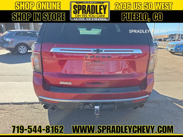 CARFAX One-Owner. Clean CARFAX. Radiant Red Tintcoat 2024 Chevrolet Tahoe High Country 4WD 10-Speed Automatic with Overdrive EcoTec3 6.2L V8 4WD, Jet Black/Mocha Leather.Recent Arrival!Come in and see why people buy from Spradley Chevrolet Hyundai and then send their friends and family. We pride ourselves on being the best in customer service and giving you the best deal possible. And if you have good credit, bad credit, bankruptcy, or are a first time buyer, we can help! Call Spradley Chevrolet Hyundais Internet Department today at 719-544-8162 and schedule your time to come in and test drive any of our new Chevrolet Silverado 1500, Impala and Suburbans or Hyundai Santa Fe, Tucson and Accents. And dont forget, we have all makes and models of pre-owned to choose from. Located at 2146 HWY 50 West, Pueblo, Colorado, where you will always hear, Oh Yes You Can! Spradley Chevrolet Hyundai, your dealership for all of Southwest, Southeast and Southern, Colorado!
