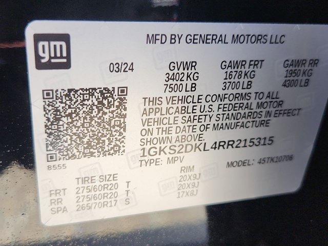- VIN : 1GKS2DKL4RR215315
