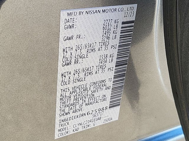 - VIN : 1N6ED1EK0RN625988