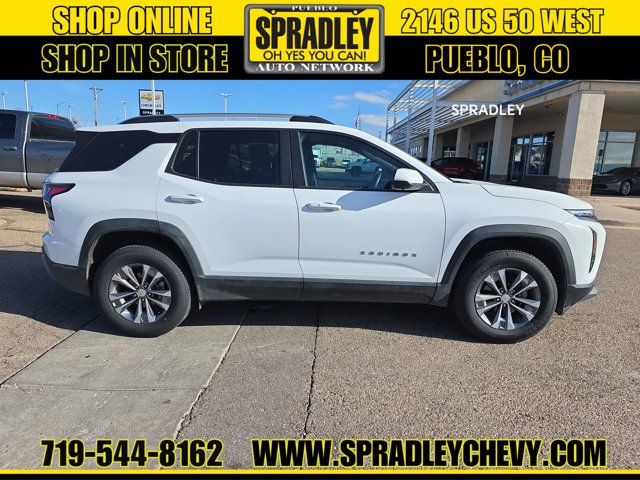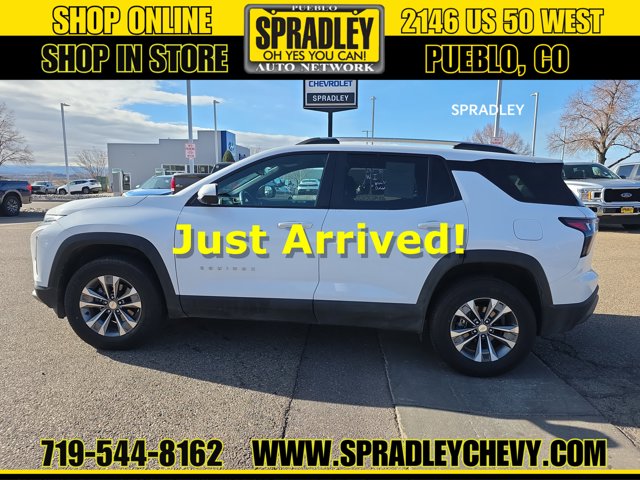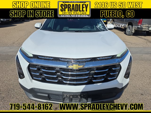 CARFAX One-Owner. Clean CARFAX. Certified. Summit White 2025 Chevrolet Equinox LT AWD 8-Speed Automatic 1.5L DOHC AWD.Recent Arrival! 24/29 City/Highway MPGChevrolet Certified Pre-Owned Details:* 172 Point Inspection* Transferable Warranty* Roadside Assistance* Limited Warranty: 12 Month/12,000 Mile (whichever comes first) from certified purchase date* Warranty Deductible: $0* Powertrain Limited Warranty: 72 Month/100,000 Mile (whichever comes first) from original in-service date* 24 months/24,000 miles (whichever comes first) Certified Pre-Owned Scheduled Maintenance Plan and 3 days/150 miles (whichever comes first) Vehicle Exchange Program. SiriusXM 3-month trial subscription.* Vehicle HistoryCome in and see why people buy from Spradley Chevrolet Hyundai and then send their friends and family. We pride ourselves on being the best in customer service and giving you the best deal possible. And if you have good credit, bad credit, bankruptcy, or are a first time buyer, we can help! Call Spradley Chevrolet Hyundais Internet Department today at 719-544-8162 and schedule your time to come in and test drive any of our new Chevrolet Silverado 1500, Impala and Suburbans or Hyundai Santa Fe, Tucson and Accents. And dont forget, we have all makes and models of pre-owned to choose from. Located at 2146 HWY 50 West, Pueblo, Colorado, where you will always hear, Oh Yes You Can! Spradley Chevrolet Hyundai, your dealership for all of Southwest, Southeast and Southern, Colorado!