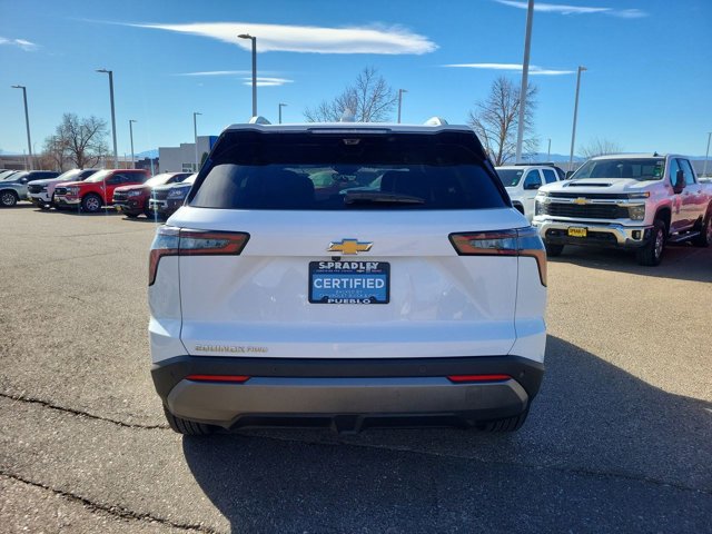 CARFAX One-Owner. Clean CARFAX. Certified. Summit White 2025 Chevrolet Equinox LT AWD 8-Speed Automatic 1.5L DOHC AWD.24/29 City/Highway MPGChevrolet Certified Pre-Owned Details:* Roadside Assistance* Vehicle History* Transferable Warranty* 172 Point Inspection* Warranty Deductible: $0* 24 months/24,000 miles (whichever comes first) Certified Pre-Owned Scheduled Maintenance Plan and 3 days/150 miles (whichever comes first) Vehicle Exchange Program. SiriusXM 3-month trial subscription.* Limited Warranty: 12 Month/12,000 Mile (whichever comes first) from certified purchase date* Powertrain Limited Warranty: 72 Month/100,000 Mile (whichever comes first) from original in-service dateCome in and see why people buy from Spradley Chevrolet Hyundai and then send their friends and family. We pride ourselves on being the best in customer service and giving you the best deal possible. And if you have good credit, bad credit, bankruptcy, or are a first time buyer, we can help! Call Spradley Chevrolet Hyundais Internet Department today at 719-544-8162 and schedule your time to come in and test drive any of our new Chevrolet Silverado 1500, Impala and Suburbans or Hyundai Santa Fe, Tucson and Accents. And dont forget, we have all makes and models of pre-owned to choose from. Located at 2146 HWY 50 West, Pueblo, Colorado, where you will always hear, Oh Yes You Can! Spradley Chevrolet Hyundai, your dealership for all of Southwest, Southeast and Southern, Colorado!