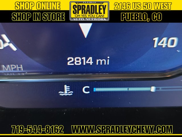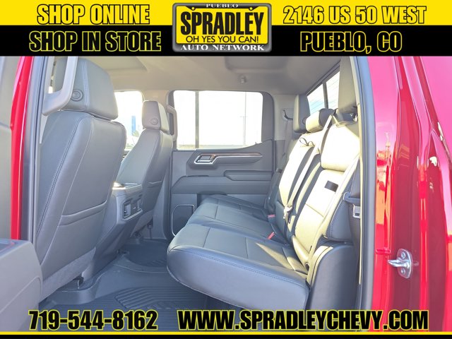 Only 2,814 Miles! Delivers 19 Highway MPG and 16 City MPG! This Chevrolet Silverado 1500 boasts a Gas V8 5.3L/325 engine powering this Automatic transmission. WIRELESS CHARGING, WINDOW, POWER, REAR SLIDING with rear defogger, WHEELS, 20 X 9 (50.8 CM X 22.9 CM) HIGH GLOSS BLACK PAINTED ALUMINUM (STD).*This Chevrolet Silverado 1500 Comes Equipped with These Options *SEAT, UP-LEVEL REAR WITH STORAGE PACKAGE 60/40 folding bench for Crew Cab models, includes full-length bench seat, seatback storage on left and right side, center fold out armrest with 2 cupholders, full cab width under-seat storage, (includes child seat top tether anchor), PROTECTION PACKAGE includes (B1J) wheel house liners and (CGN) Chevytec spray-on bedliner, LEATHER PACKAGE Includes (SNR) Up-level Rear Seat with Storage Package., CONVENIENCE PACKAGE II includes (UG1) Universal Home Remote, (A48) rear sliding power window, (PZ8) Hitch Guidance with Hitch View and (UET) Trailering App Includes (UQA) Bose Premium Sound System. , WHEELHOUSE LINERS, REAR, USB PORTS, 2, CHARGE/DATA PORTS LOCATED INSIDE CENTER CONSOLE, UNIVERSAL HOME REMOTE, TRANSMISSION, 10-SPEED AUTOMATIC with Electronic Transmission Range Selector, (ETRS), electronically controlled with overdrive, tow/haul mode and steering column paddle shifters. Includes Cruise Grade Braking and Powertrain Grade Braking, TIRES, 275/60R20SL ALL-TERRAIN, BLACKWALL (STD), TIRE, SPARE 255/80R17SL ALL-SEASON, BLACKWALL.* Stop By Today *Come in for a quick visit at Spradley Chevrolet Hyundai, 2146 W Us Highway 50, Pueblo, CO 81008 to claim your Chevrolet Silverado 1500!