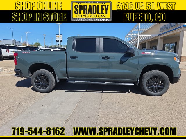 Clean CARFAX. Cypress Gray 2025 Chevrolet Silverado 1500 LT Trail Boss 4WD 10-Speed Automatic EcoTec3 5.3L V8 10-Speed Automatic, 4WD, Black Leather.Recent Arrival!Come in and see why people buy from Spradley Chevrolet Hyundai and then send their friends and family. We pride ourselves on being the best in customer service and giving you the best deal possible. And if you have good credit, bad credit, bankruptcy, or are a first time buyer, we can help! Call Spradley Chevrolet Hyundais Internet Department today at 719-544-8162 and schedule your time to come in and test drive any of our new Chevrolet Silverado 1500, Impala and Suburbans or Hyundai Santa Fe, Tucson and Accents. And dont forget, we have all makes and models of pre-owned to choose from. Located at 2146 HWY 50 West, Pueblo, Colorado, where you will always hear, Oh Yes You Can! Spradley Chevrolet Hyundai, your dealership for all of Southwest, Southeast and Southern, Colorado!