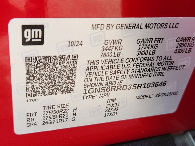 - VIN : 1GNS6RRD3SR103646
